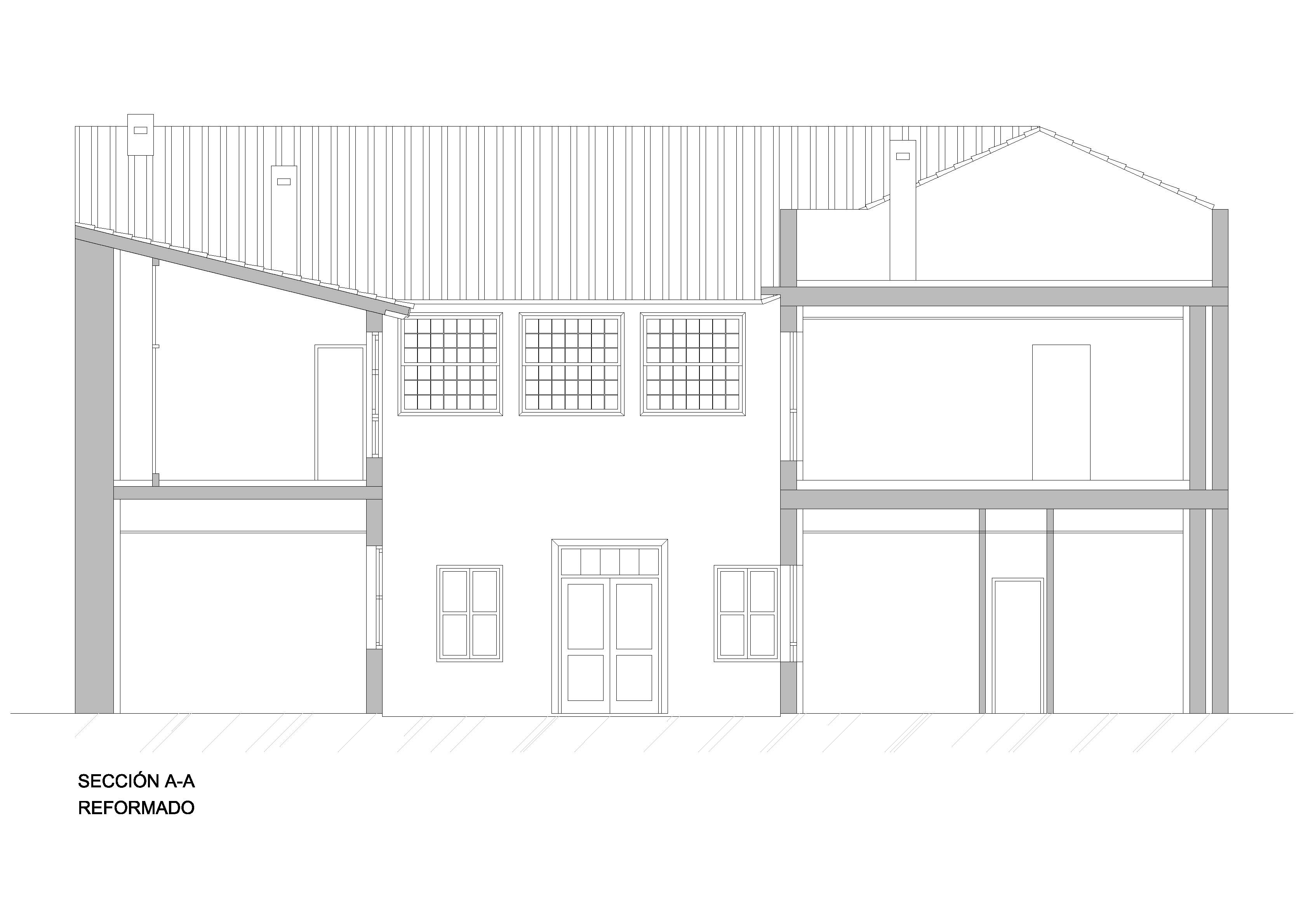 Seccion A-A Reformado Publicado el 15/03/2013 a 3368 × 2381 en Anchieta 60 – Rehabilitación de casa canaria para 7 viviendas